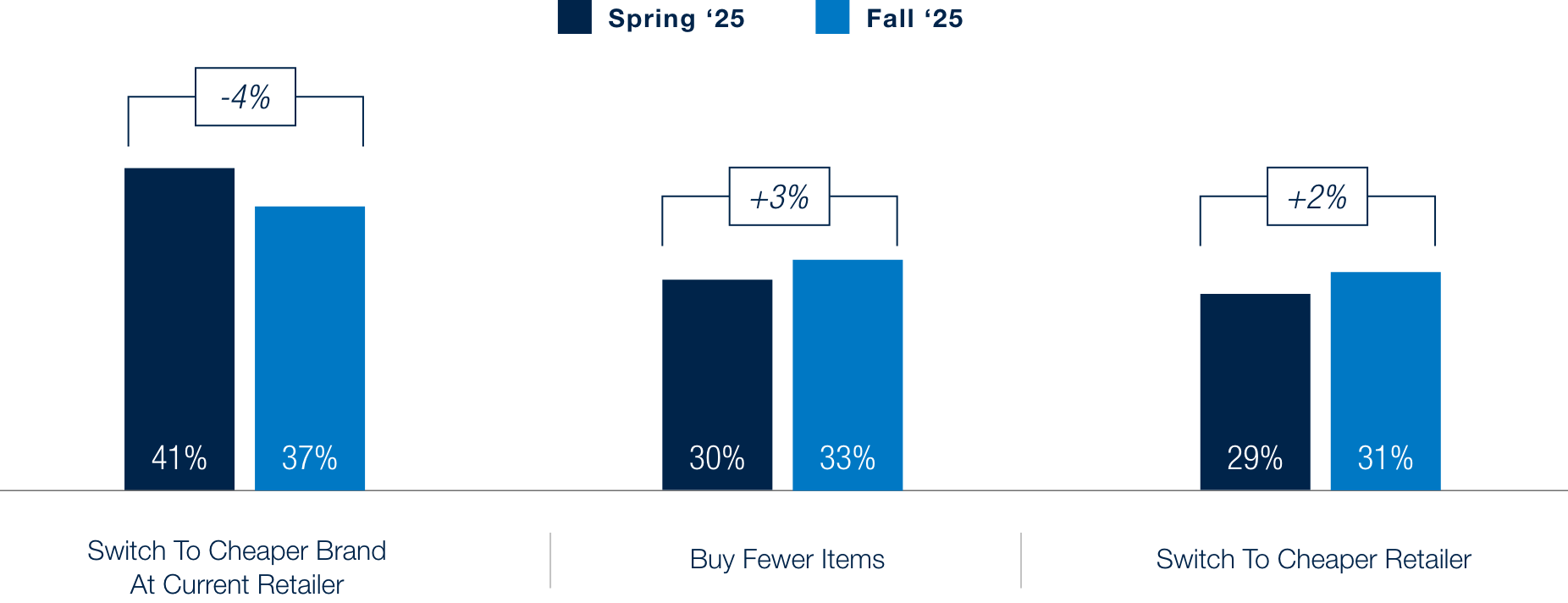 When it comes to beauty, brand loyalty remains low compared to retailer loyalty. Among cost conscious consumers, slightly fewer now plan to switch to less expensive brands at their current retailer (37% in Fall ’25 vs. 41% in Spring ’25). Instead, more are choosing to buy fewer items (33% in Fall ‘25 vs. 30% in Spring ‘25) or switch retailers for better prices (31% vs. 29%). This highlights the need for retailers to invest in retention within a routine-driven category.