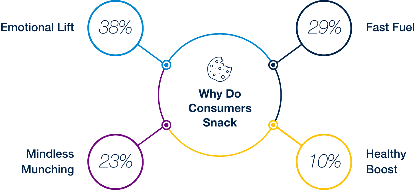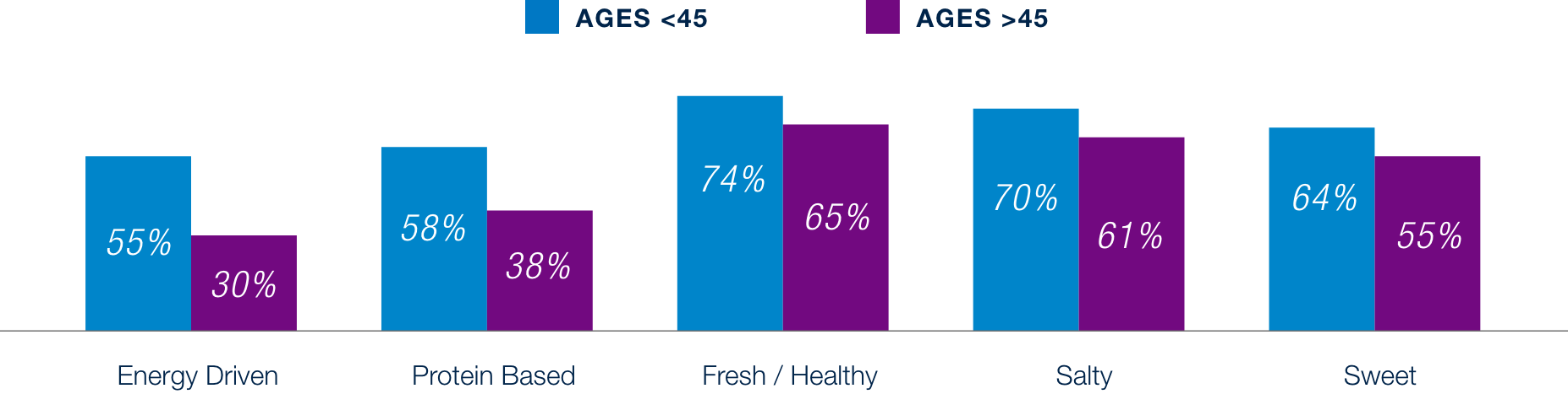 Beyond the intrinsic motivations for snacking, we are starting to see consumers gravitate towards more nutritious options. We see that younger consumers are consistently snacking more than older consumers, especially in categories that are more energy driven and protein based, where the difference is by 20 percentage points. This shift indicates how the presence of positive ingredients in snacks are appealing to consumers seeking options that can complement more healthy and active lifestyles.